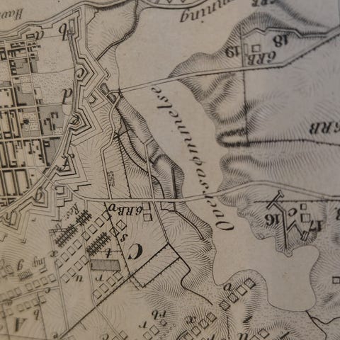 Opmål af Generalkvartermester-staben, som laver meget dekorative kort.