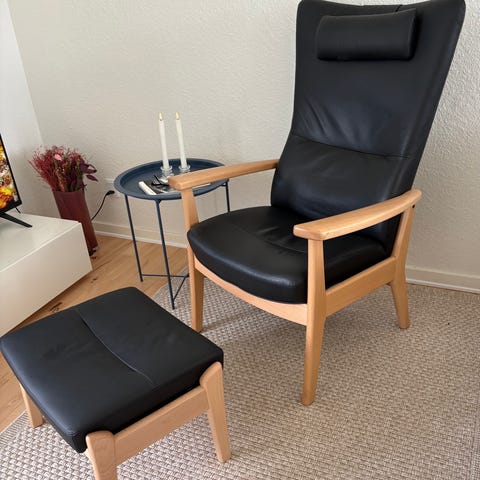 Fin lænestol med fodskammel sælges i god stand