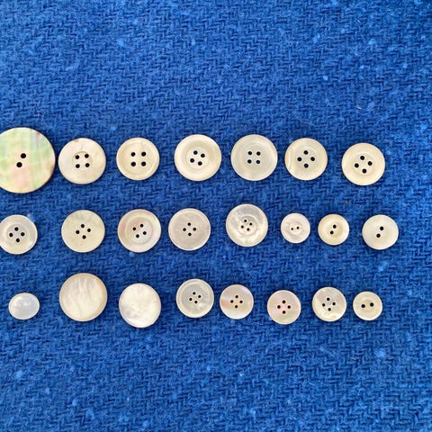30 stk. Øjeknap 12mm perlemor fv. hvid.