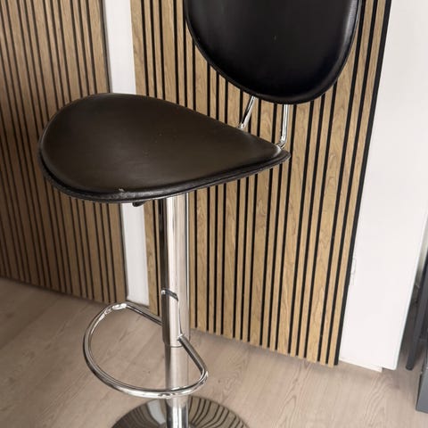 2 barstole med armlæn. Sort kunstlæder. Hæve-sænkefunktion fungerer.