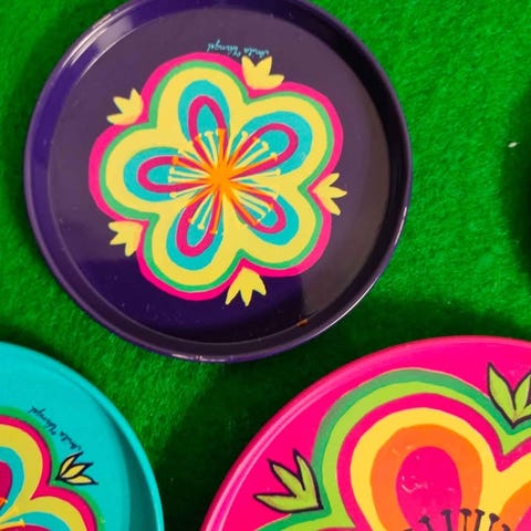 6 Ira Danmark coasters i emalje med motiv af Ethel von horn. De er godt brugte, men kan sagtens bruges mere.