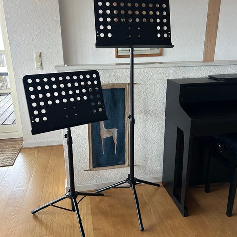 De kan justeres op til ca. 85–90 cm og er lette, enkle og nemme at flytte rundt på. Fine til noder, sangark, undervisning eller hobbybrug.