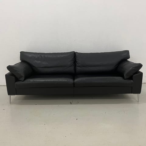 Søren Lund SL329 3 Pers.Sofa i sort semianilin læder og med ben i alu spike.
