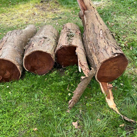 Nyfældet lindetræ i stammer (længde optil 1,8 m) og kævler (diameter op til 50 cm) sælges.