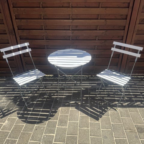 2 hvide bistro stole og bord