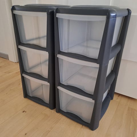 IKEA opbevaringsreol med skuffer plast sort/grå. STK 50 KR