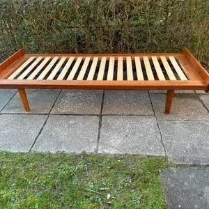 Daybed beklædt med masivt egetræ,ben og gavle i teaktræ.