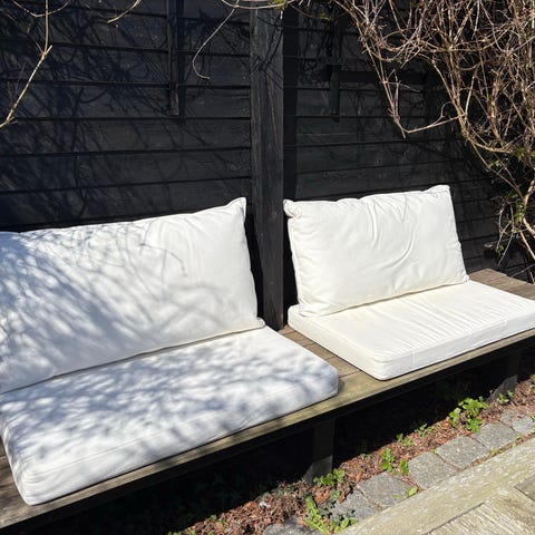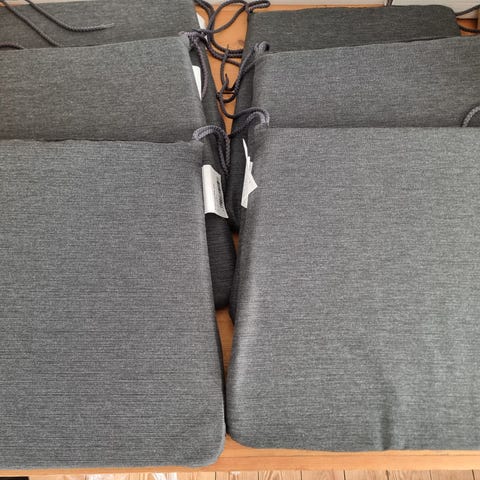 Havehynder sæt i mørkegrå. Sættet består af tykke, firkantede sædehynder samt rektangulære ryghynder, velegnet til udendørsmøbler. Hynderne har glat overflade og ensfarvet betræk. Kan bruges til fx havestole eller havebænk, hvor der ønskes ekstra sidde- og rygkomfort. Farven er neutral mørkegrå, som passer til mange typer havemøbler og udendørsmiljøer.