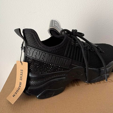 Steve Madden Matrica sneakers i størrelse 38. Modellen er i blå nuancer med kraftig, mønstret sål og snørelukning. Overdelen har tekstil- og syntetiske detaljer samt tydeligt Steve Madden-logo på siden. Velegnet som hverdagssko eller fritidssko.
