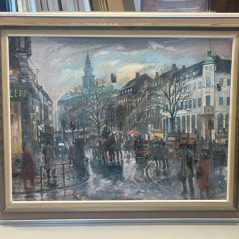 Super flot maleri af Lis Bjergsted med motiv af Nyhavn. Str 124 cm x 94,5cm