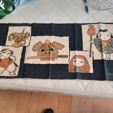 Smukt kinesisk vægophæng med fine broderede scener af mennesker i bevægelse, musik og hverdagsliv. Hver lille figur føles som en del af en større historie – som at kigge ind i en gammel fortælling, der stadig hvisker.