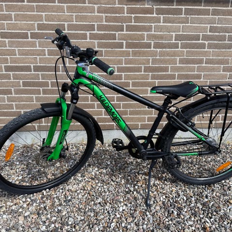 Kildemoes børnecykel med 26" hjul i lilla. Cyklen har lav indstigning, 7 indv gear, kurv, bagagebærer, lås, støttefod, lygter, gode dæk, ny serviceret og klar til ny ejer