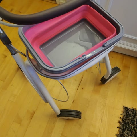 Indendørs kørestol i virkelig flot stand, lækkert håndtag i læder og designet til at kunne komme helt tæt på møbler. Den er meget stabil så den kan bruges som hjælp til at rejse sig. Har original bakke og kurv. Flot design der passer stilfuldt ind i indretningen.