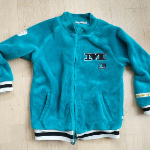 Jakke, Teddyfleecejakke, Minymo, str. 122, Den blødeste teddyfleecejakke (=langhåret fleece). Pæn som ny fra ikkerygerhjem uden husdyr. Kan sendes eller afhentes i Nørresundby. Rabat gives gerne ved køb af flere af mine annoncer. Butikspris 200,-