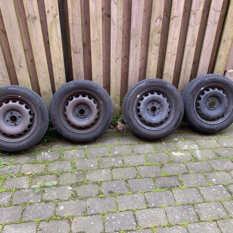 4 stk næsten nye sommerdæk med fælge til en Kia Picanto eller C 1. Dækkene har kun kørt i 2 måneder, ca 1500 km.