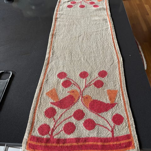 Smuk retro bordløber / -dug eller skøn vægudsmykning i lækre blå farver, fedt mønster og rigtig god kvalitet.