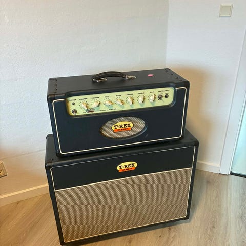 En helt igennem fantastisk forstærker. Håndbygget i nogle få hundrede eksemplarer af danske T-rex med de bedste komponenter. I denne sidder 2 stk. Celestion Vintage 30's.