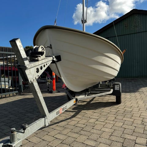 Både ror og sværd er i pæn stand, sværdet har nogen epoxy fix, men kanten står skarpt