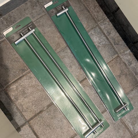 Håndklædestang i kromfarvet metal til vægmontering. Enkelt stang, egnet til ophæng af håndklæder på badeværelse eller gæstetoilet. Monteres med skjulte beslag i begge ender på væggen.