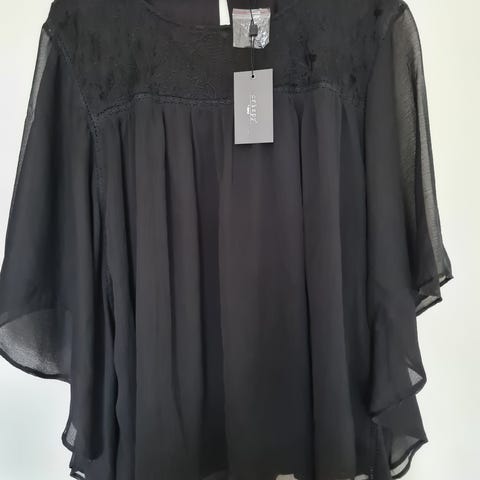 Ny Zhenzi str M 46 - 48 3xl -4xl sort bluse i flere lag med chiffonærmer nypris 300,-
