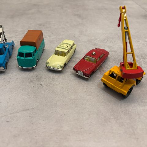 Sælger 6 originale vintage legetøjsbiler fra Corgi og Matchbox i metal.