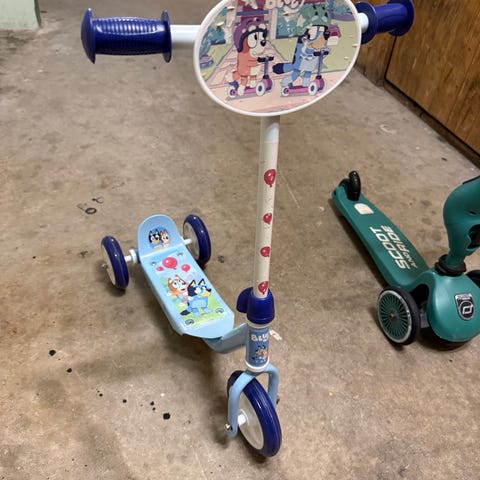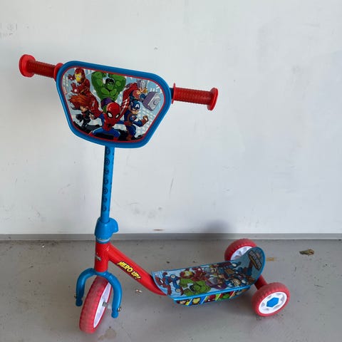 Paw Patrol løbehjul til børn med 3 hjul i blå og rød. Løbehjulet har motiv af Paw Patrol-figurer på styret og ståbrættet. Udstyret med to baghjul og ét forhjul for ekstra stabilitet, samt håndtag med greb i rød plast. Egnet til mindre børn, der ønsker et stabilt løbehjul med kendt tegneseriemotiv. Brugt få gange