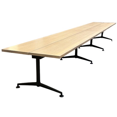 Med sine proportioner er bordet velegnet til flere arbejdspladser eller mindre møder, og det enkle design sikrer, at det forbliver relevant i både moderne og klassiske indretninger.