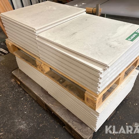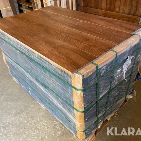 Kommer på 4 paller med i alt 168 pakker med 1,20 m2 i hver pakke