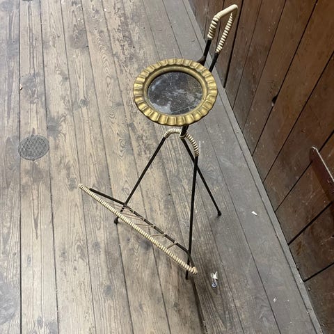 Original antik jagtstok med foldbart sæde, dateret ca. 1950–1960, lavet af træ med hældende træhåndtag og en metalramme, der foldes ud til et tripod, sædet er lavet af trekantet læder fastgjort med messingknapper, oprindelse Storbritannien; dimensioner H 90 cm, B 35 cm, D 50 cm; god brugt stand med mindre alders- og plettespor. Klik på den blå "gå til varen" knap, for at købe eller byde på denne vare. Den samlede pris vil blive vist inden du afgiver dit bud.