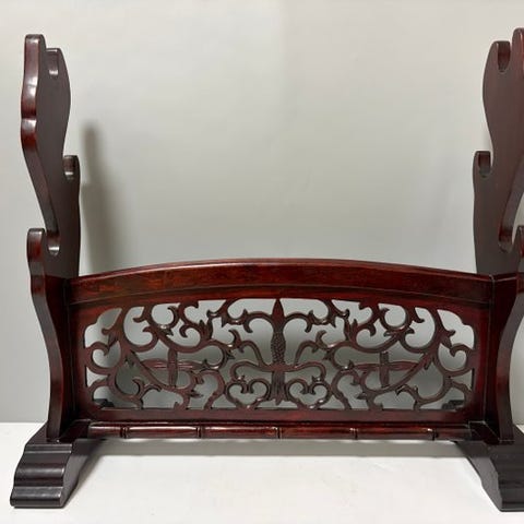 Japansk lakeret træsadel (kura) med underskrivelses inscription som viser en håndværkers underskrift datert Tenshō 13 (1585), fremstillet i Japan af træ, 28 cm høj, 37,5 cm bred og 40 cm dyb, i god stand. Klik på den blå "gå til varen" knap, for at købe eller byde på denne vare. Den samlede pris vil blive vist inden du afgiver dit bud.