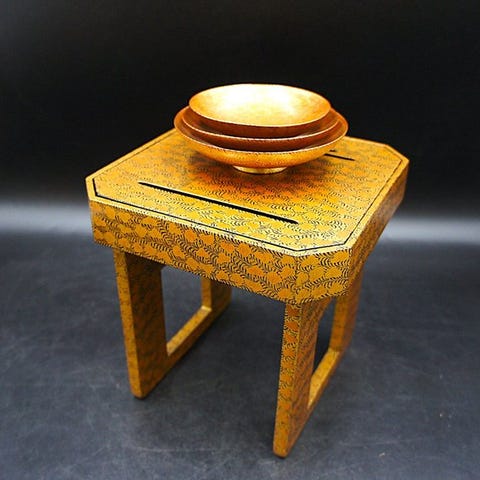 Håndfremstillet i træ, afsluttet med traditionel lak og inlagt med subtile raden (perlemor) detaljer. Sættet er ubrugt og i fremragende stand, med kun minimale mærker fra lang tids opbevaring.