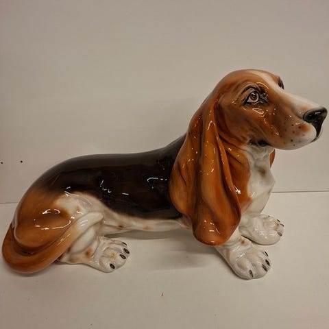 Par af keramiske hunde fra Italien, 25 cm høj, 20 cm bred og 25 cm dyb, ikke underskrevet og i fremragende stand. Klik på den blå "gå til varen" knap, for at købe eller byde på denne vare. Den samlede pris vil blive vist inden du afgiver dit bud.