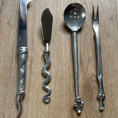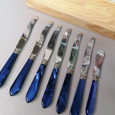 Håndtagene på disse knive er lavet af poleret horn.