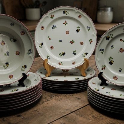 Et harmonisk service, ideelt til et elegant bord eller en samling dedikeret til borddækning med vegetalt tema.