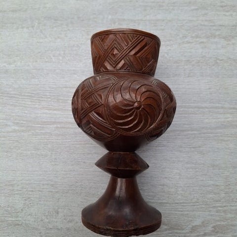 Kuba palmvinbæger, 18 cm høj, træ, oprindelse DR Congo, Kuba, Privécollectie, i god stand. Klik på den blå "gå til varen" knap, for at købe eller byde på denne vare. Den samlede pris vil blive vist inden du afgiver dit bud.