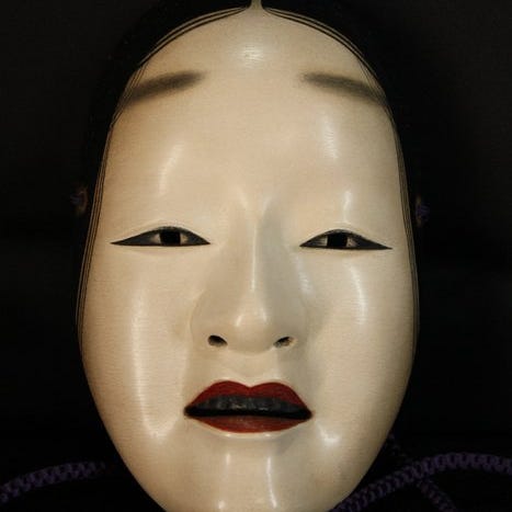 Kongo-skolen bruger denne specifikke version af masken "Kagekiyo", udformet til at afbilde den udmagrede fremtoning af den blinde, forviste kriger, samtidig med at bevare en fornemmelse af hans tidligere styrke.