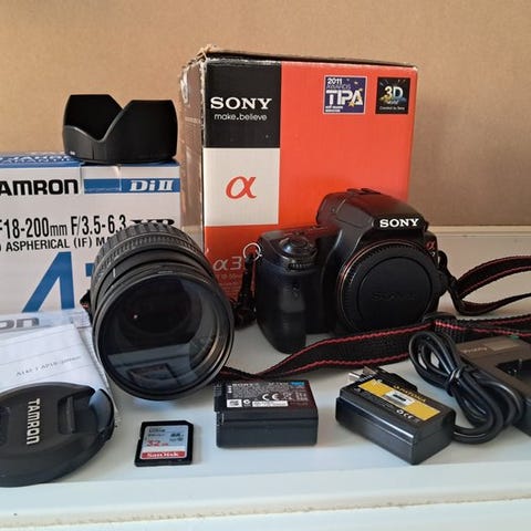 Sony SLT-A58 med DT 3.5-5.6/18-70mm MACRO, fatning Minolta A / Sony A, fysisk stand meget god og fuldt funktionel, lukkehastighed 6.417 billedtagninger, sprogindstilling kun japansk, inkluderer 4 GB SD-kort, batteri, japansk oplader, frontdæksel, objektiv-dæksel, rem. Klik på den blå "gå til varen" knap, for at købe eller byde på denne vare. Den samlede pris vil blive vist inden du afgiver dit bud.