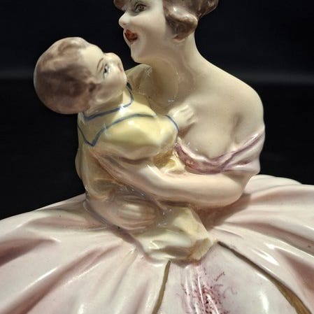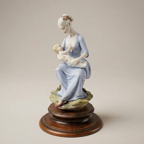Pragtfuld stor Capodimonte porcelænsfigur fra Napoli, der forestiller en øm scene af en ung mor med sit barn.