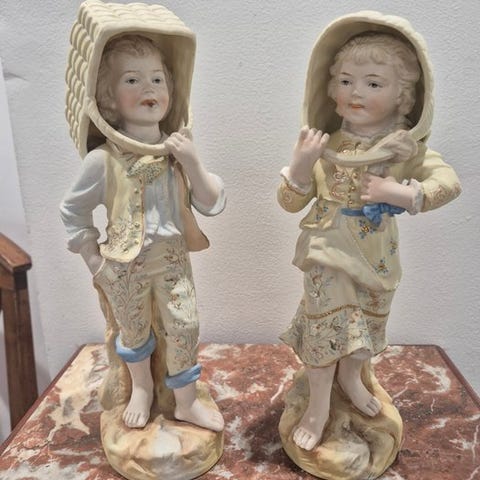 Jeg præsenterer jer for dette magnifikke og sjældne par porcelænsfigurer fra Capodimonte, oprindeligt fra en privat samling, fremstillet i Capodimonte Porcelænsfabrik (Napoli). Disse skulpturer er ikke blot dekorationselementer, men også dele af den italienske kultur.