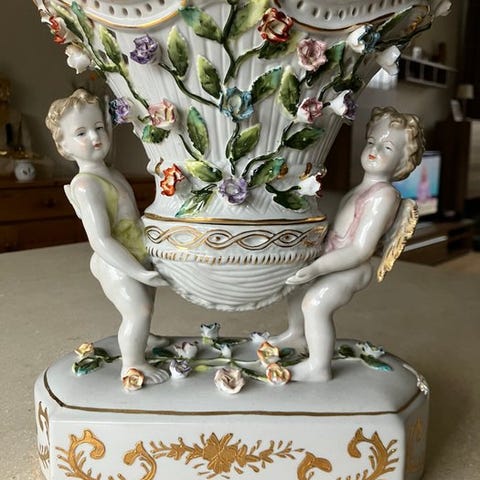 Neo-Rokoko håndmalet porcelæns ornamentkrukke, signeret, med bronze/messinge montager, europæisk oprindelse Frankrig eller Italien, cremefarvet, 60 cm høj. Klik på den blå "gå til varen" knap, for at købe eller byde på denne vare. Den samlede pris vil blive vist inden du afgiver dit bud.