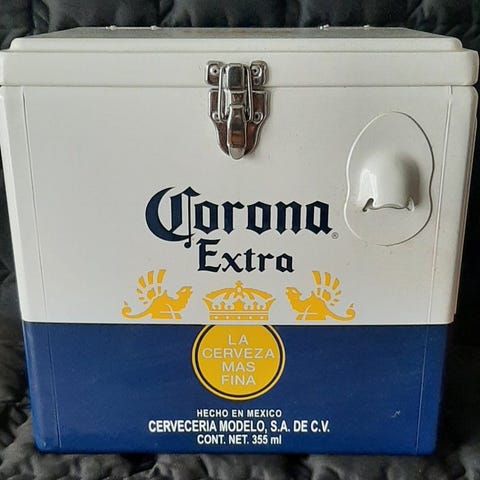 Coca Cola stålets botellero fra ca. 1990–2000, mål ca. 24 × 30 × 24 cm, oprindelse USA, i god brugt stand med synlige brugsspor og mindre buler, låget mangler en del af gummiringen. Klik på den blå "gå til varen" knap, for at købe eller byde på denne vare. Den samlede pris vil blive vist inden du afgiver dit bud.