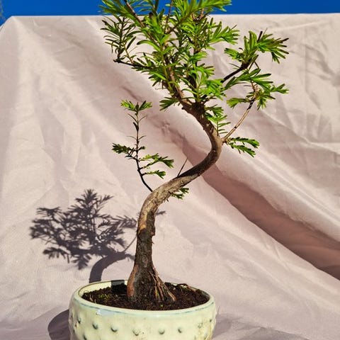 Metasequoia bonsai, cirka 15 år gammel, i en bonsai-pot. Klik på den blå "gå til varen" knap, for at købe eller byde på denne vare. Den samlede pris vil blive vist inden du afgiver dit bud.