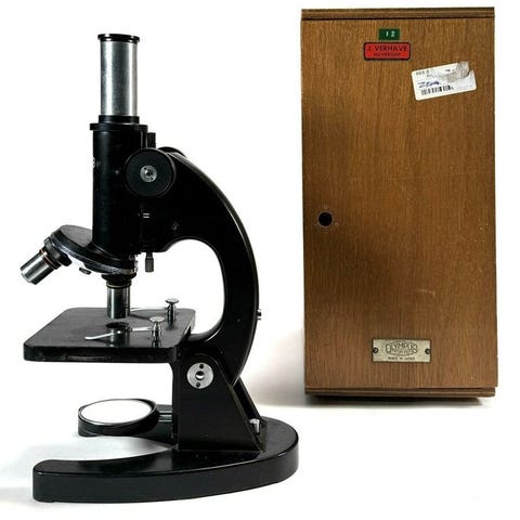 Spencer Buffalo stereomikroskop, model Spencer Buffalo stereo, testet og i funktion, meget god mekanisk tilstand, cirka 1930–1940, dimensioner ca. 40 × 26 × 24 cm, komplet med et par ægte Spencer 6x-øjnebriller og to 55 mm-objektiver. Klik på den blå "gå til varen" knap, for at købe eller byde på denne vare. Den samlede pris vil blive vist inden du afgiver dit bud.