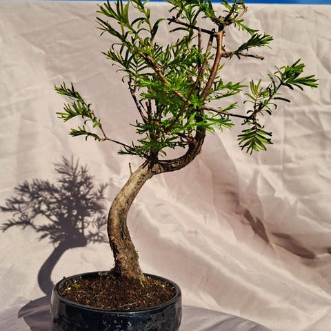 Smuk metasequoia-bonsai i en bonsai-skål. Godt rodfæstet og stærk bonsai, en bonsai som du vil få meget fornøjelse af. Træet er nemt at vedligeholde og derfor også velegnet for begyndende bonsai-entusiaster.
