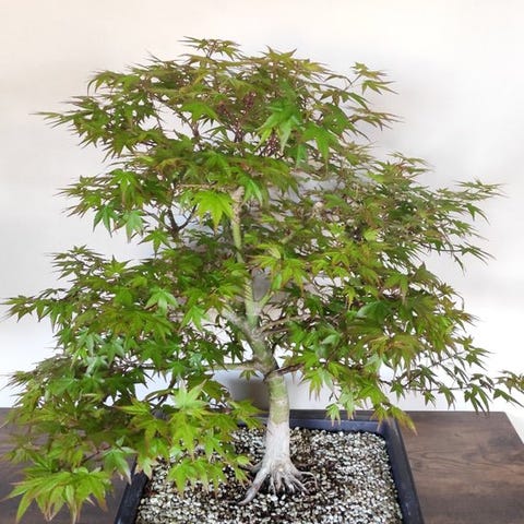 Japansk ahorn-bonsai med sine livlige forårsfarver ændrer farve, når årstiderne skifter.