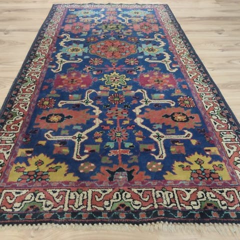 Tilbuddet omfatter et håndknyttet konvolut af tre kaukasiske orientteppicher. De indeholder et traditionelt mønster.
