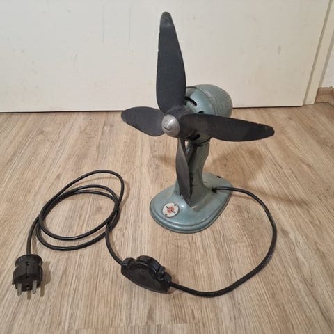Ventilator fra 50'erne/60'erne! SanGiorgio husholdningsapparater i beige farve. Fungerer med flere hastigheder, tegn på slid, lidt farvetab, men let at løse.