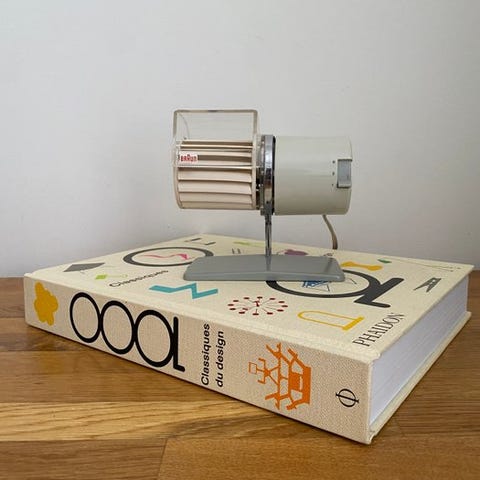 Sangiorgio ventilator af Elettrodomestici San Giorgio, i god stand med mindre slid og aldersmærker, fra 1970‑80’erne, beige creme farve, materiale plast, stål og metal, 25 cm x 25 cm x 25 cm, i virket orden, Vintage midt‑century modern design fra Italien (La Spezia). Klik på den blå "gå til varen" knap, for at købe eller byde på denne vare. Den samlede pris vil blive vist inden du afgiver dit bud.