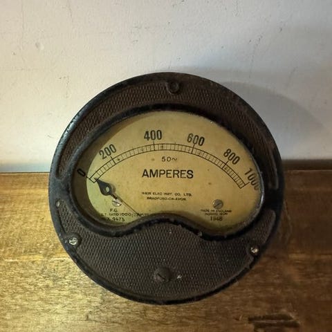 Watt Meter, italiensk bakelitapparat fra ca. 1930–1940, i god brugt stand med små aldersmærker og pletter. Klik på den blå "gå til varen" knap, for at købe eller byde på denne vare. Den samlede pris vil blive vist inden du afgiver dit bud.