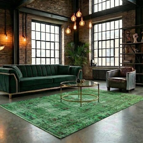Håndlavet grøn vintage tæppe med oprindelse fra Tyrkiet, model Green vintage, uld på bomuld, 255 cm × 175 cm, i meget god stand og professionelt rengjort, med certifikat. Klik på den blå "gå til varen" knap, for at købe eller byde på denne vare. Den samlede pris vil blive vist inden du afgiver dit bud.